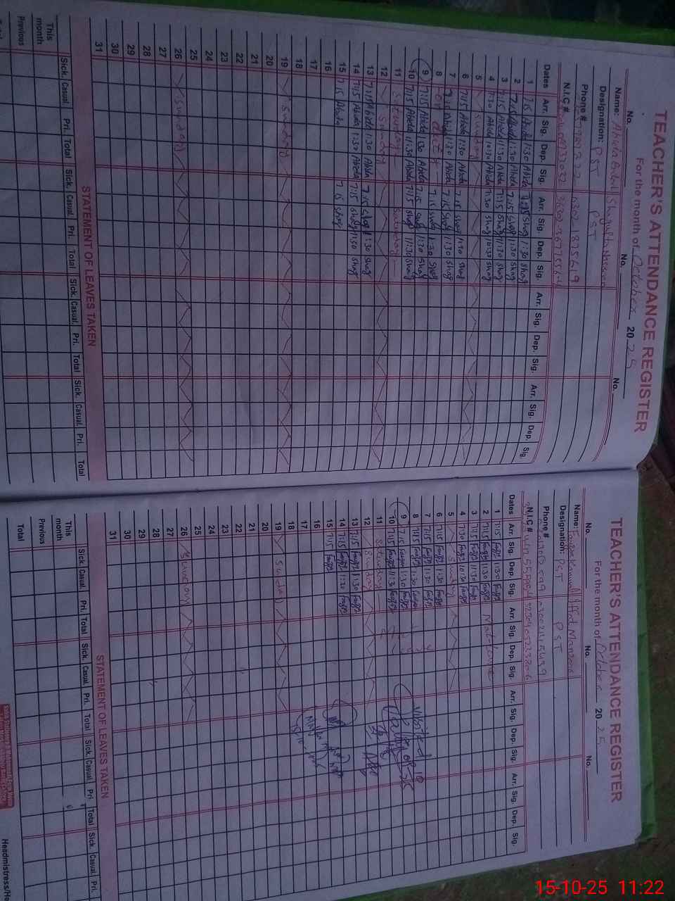 | Name: Ab**** Ba**** Designation: (School Headmaster's/Headmistress's) PST Phone/Cell Number: 03**** |
