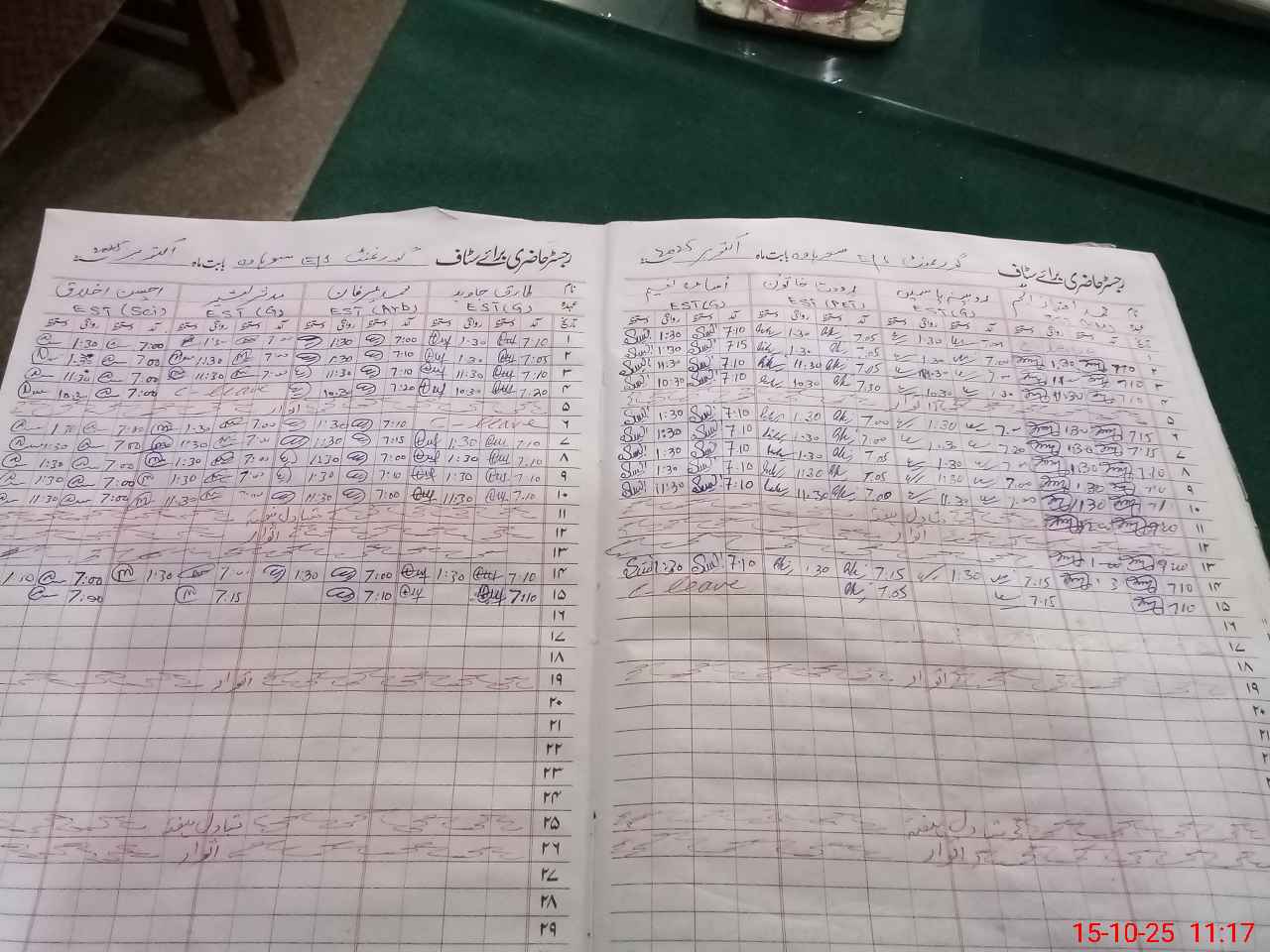 | CNIC | Full Name | Designation | R/C | Absence During Last Calender Month |