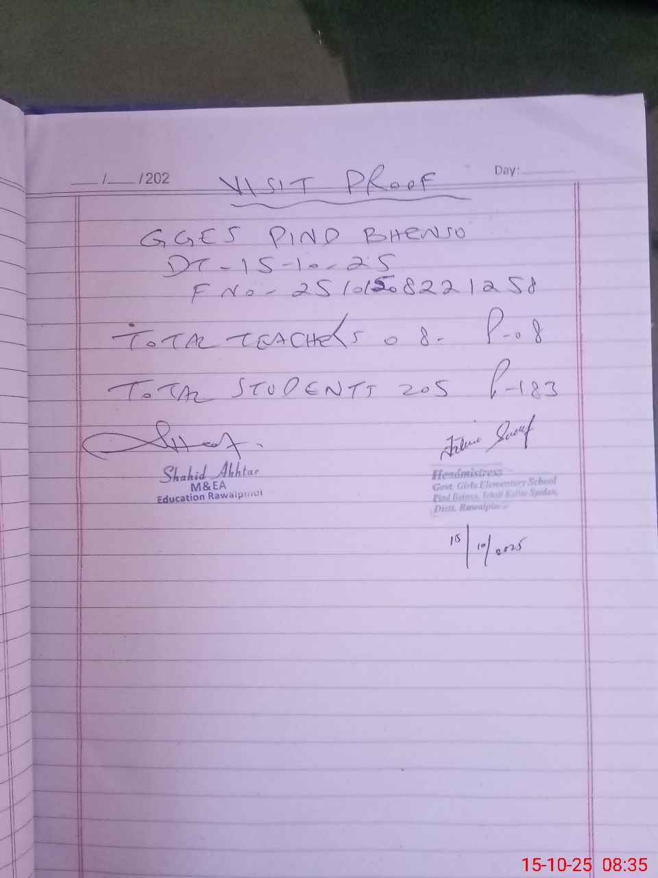 | Attendance Register | Head Teacher | MEA with School | Visit Proof |