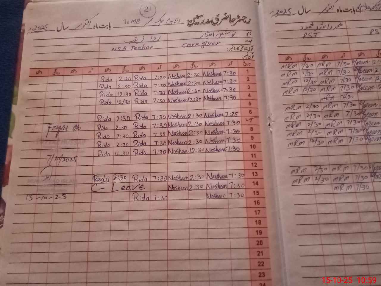| CNIC | Full Name | Designation | R/C | Absence During Last Calender Month |