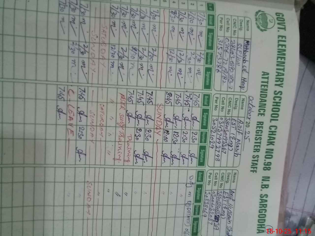 | CNIC | Full Name | Designation | R/C | Absence During Last Calender Month |