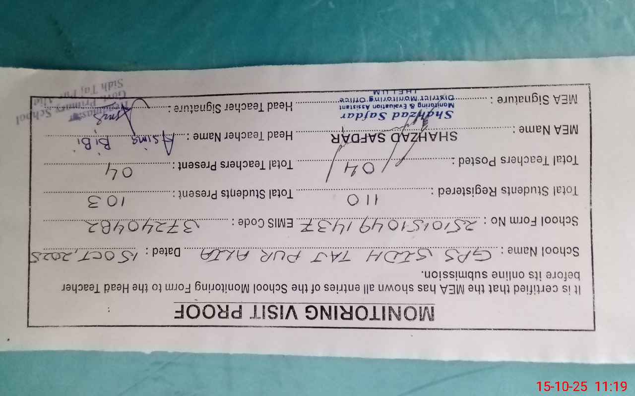 | EMIS Code: 37240482 | Name of School: GPS SIDH TAJ PUR ALIA | |||