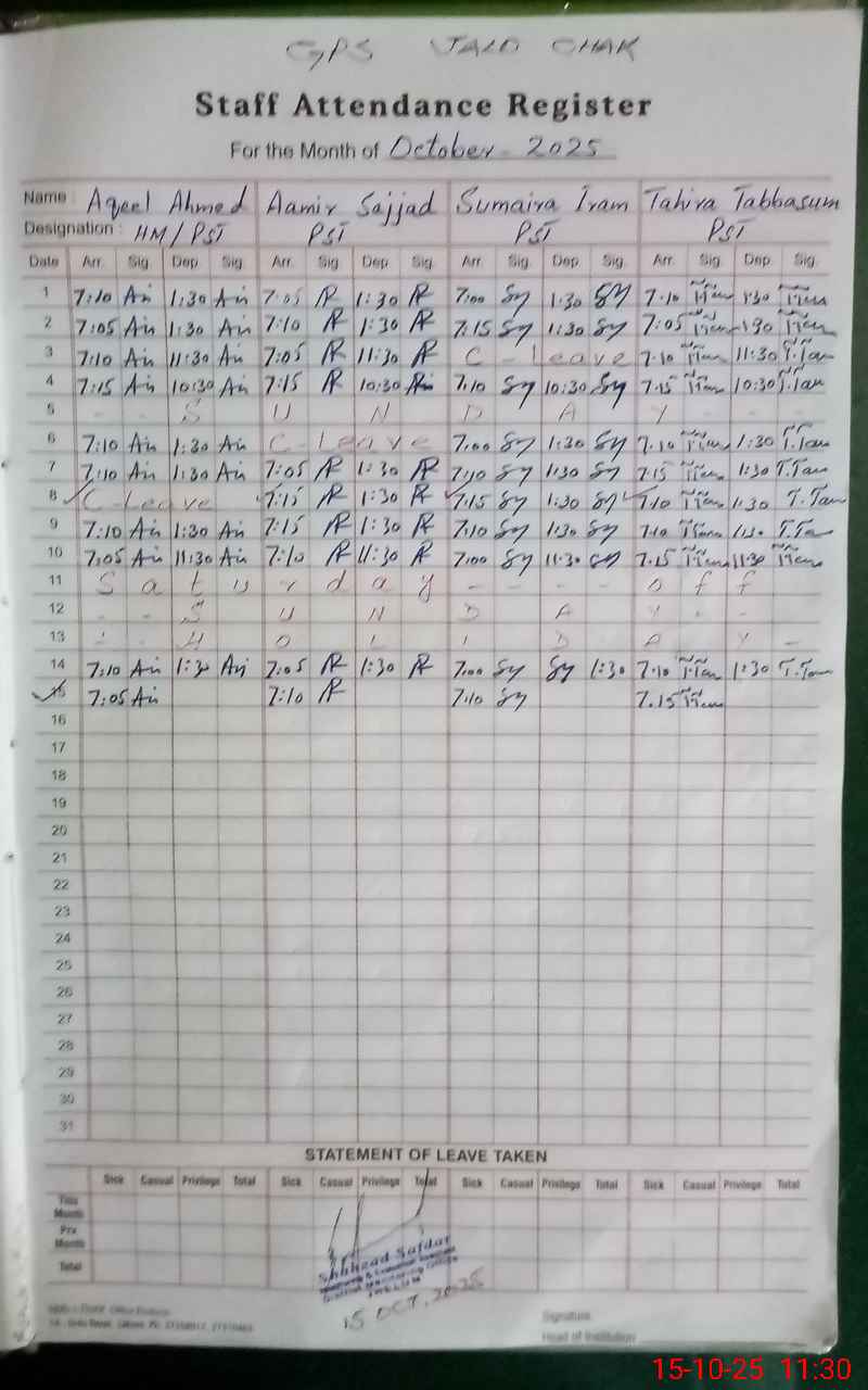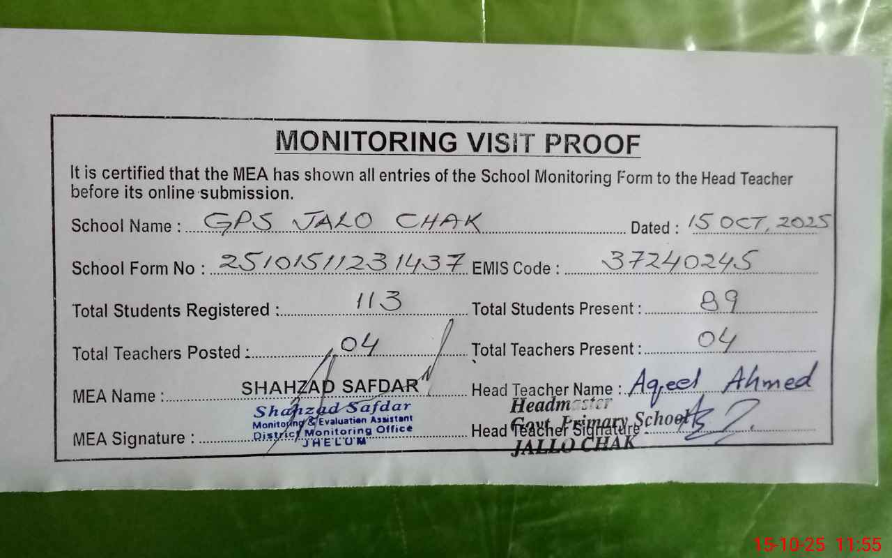 | EMIS Code: 37240245 | Name of School: GPS JALO CHAK | |||
