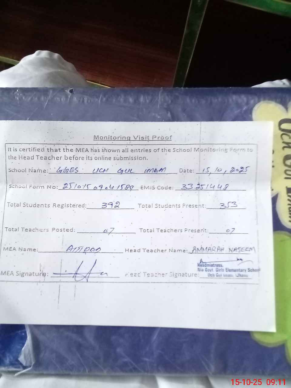 | EMIS Code: 33251448 | Name of School: GGES UCH GUL IMAM | |||