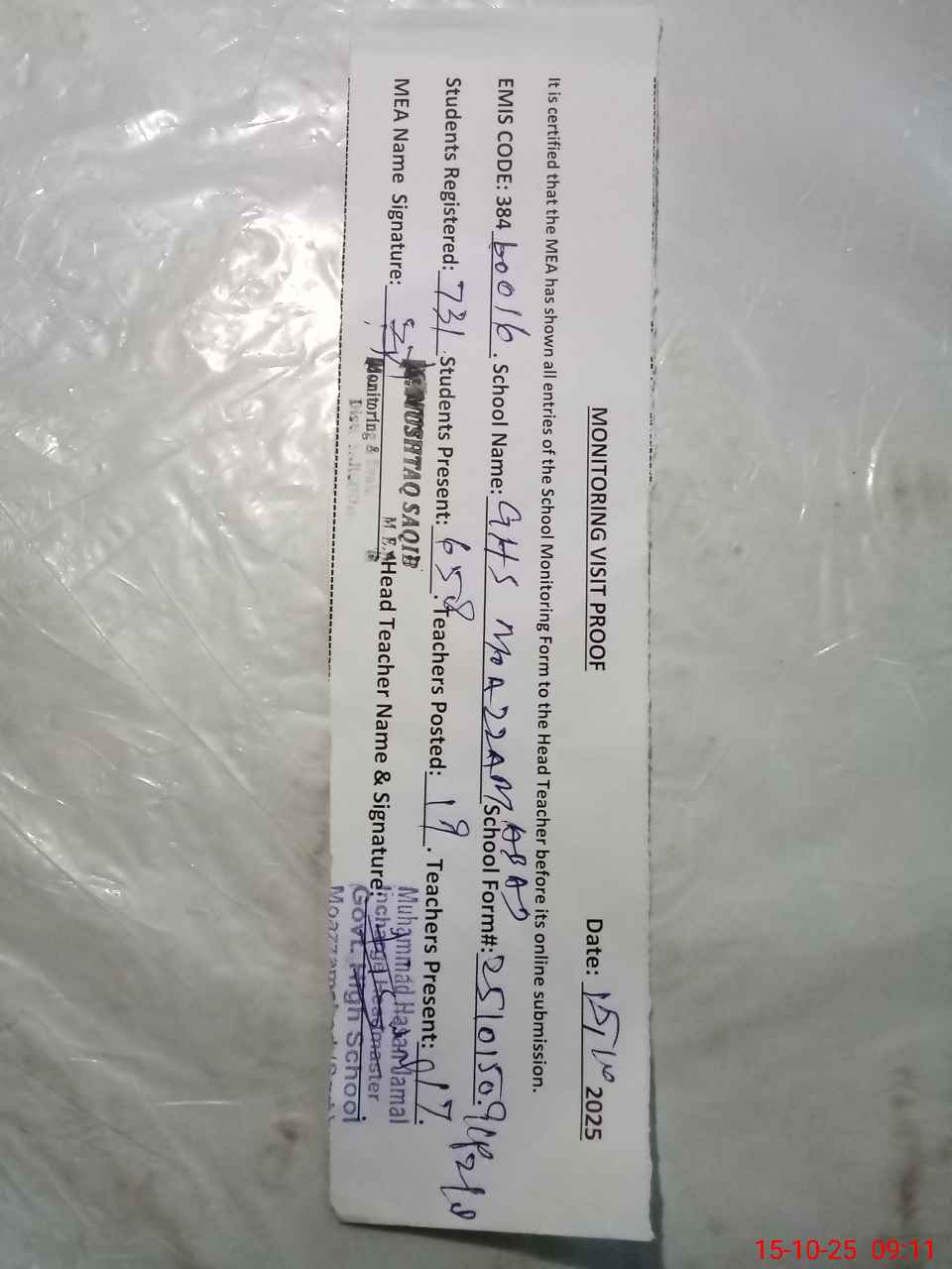 | EMIS Code: 38460016 | Name of School: GHS MUAZZAM ABAD | |||