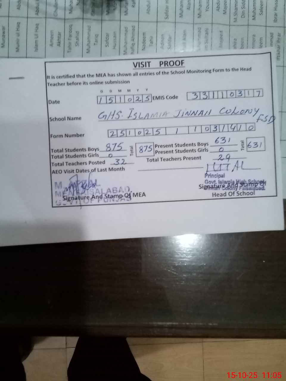 | EMIS Code: 33110317 | Name of School: GHS ISLAMIA JINNAH COLONY FSD | |||