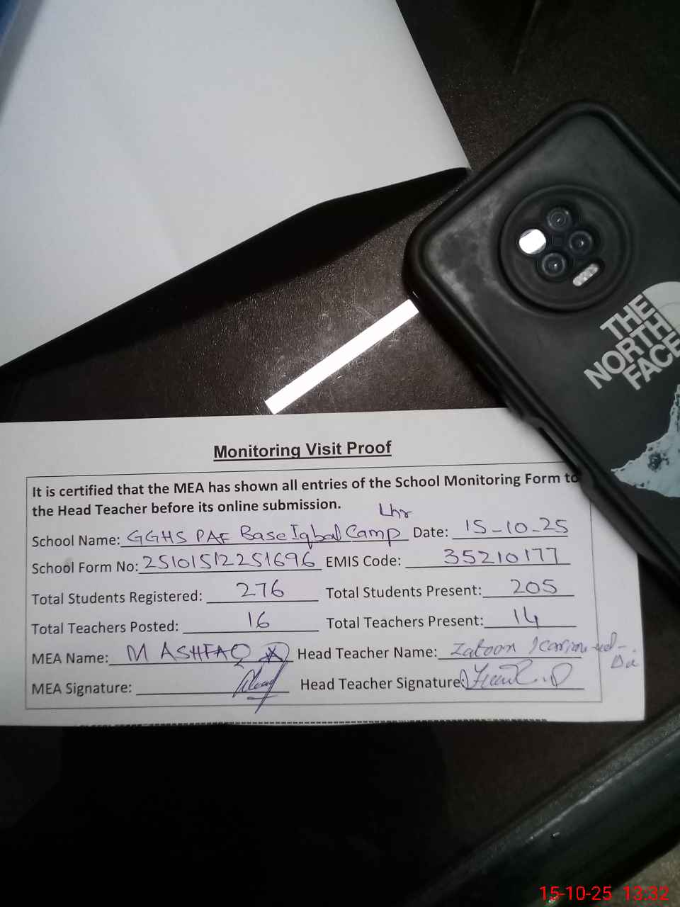 | Attendance Register | Head Teacher | MEA with School | Visit Proof |