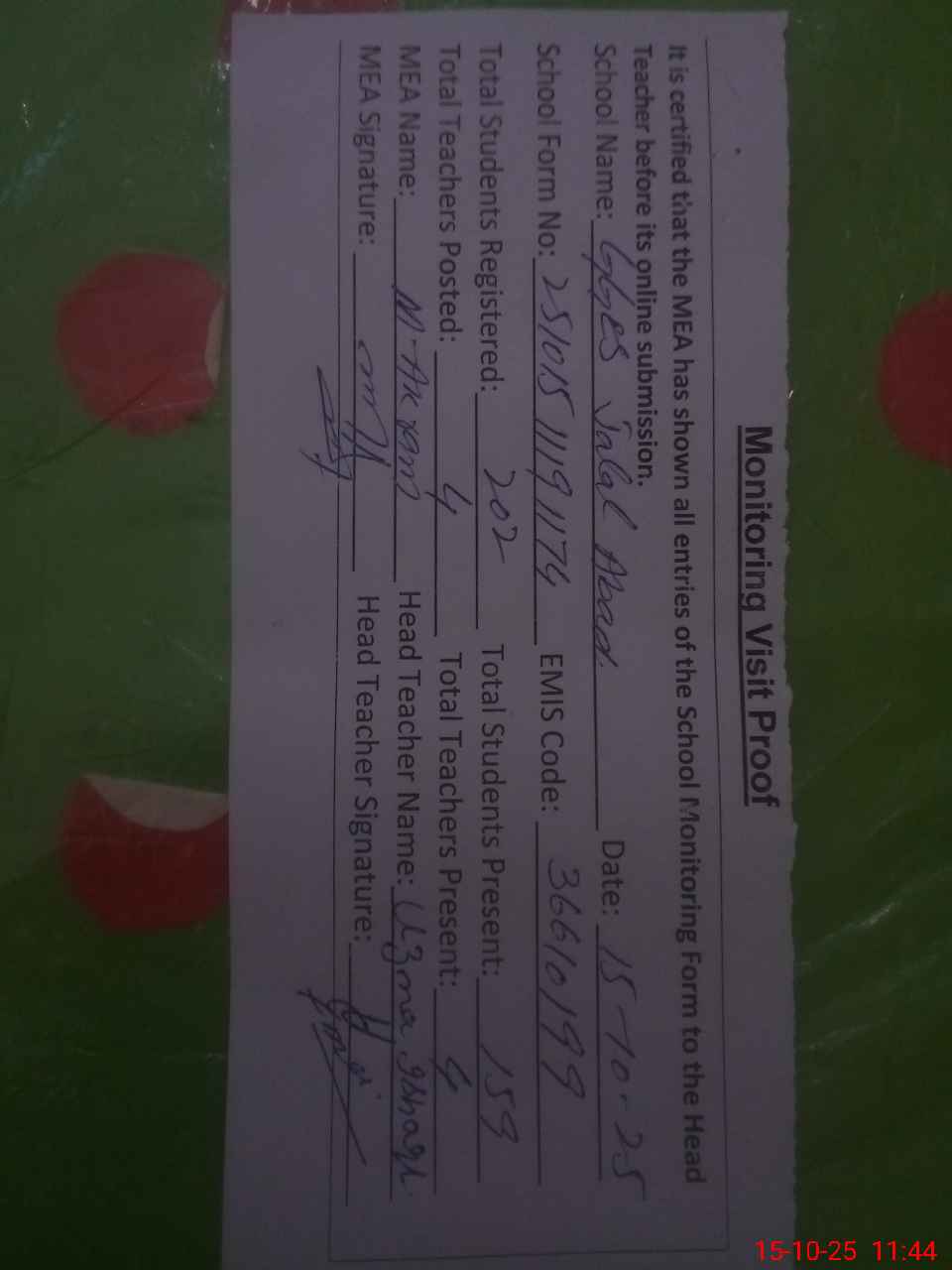 | EMIS Code: 36610199 | Name of School: GGES JALAL ABAD | |||