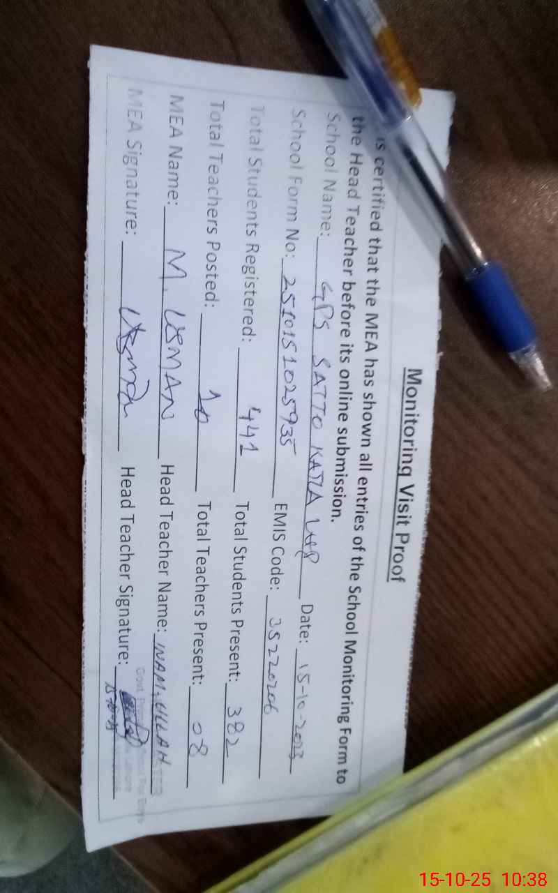 | EMIS Code: 35220206 | Name of School: GPS SATTO KATLA LAHORE | |||