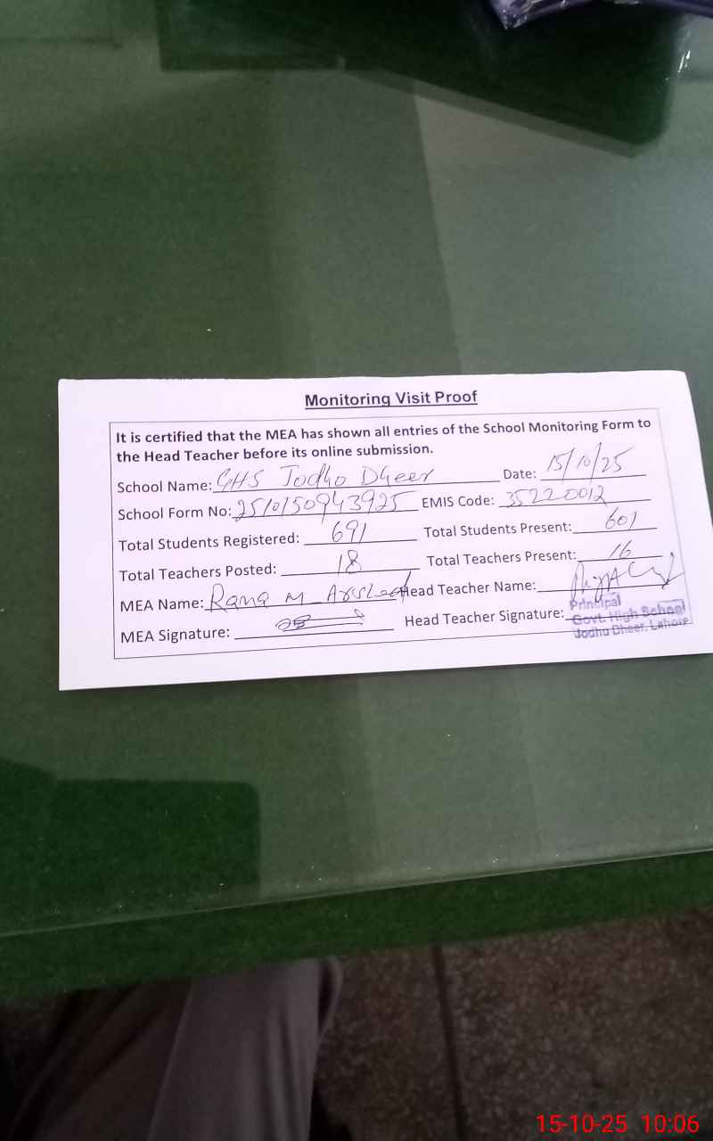 | EMIS Code: 35220012 | Name of School: GHS JODHO DHEER | |||
