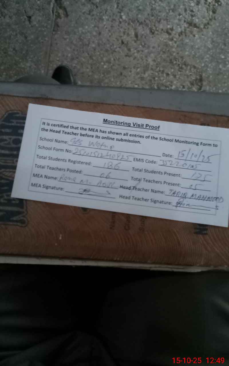 | Attendance Register | Head Teacher | MEA with School | Visit Proof |