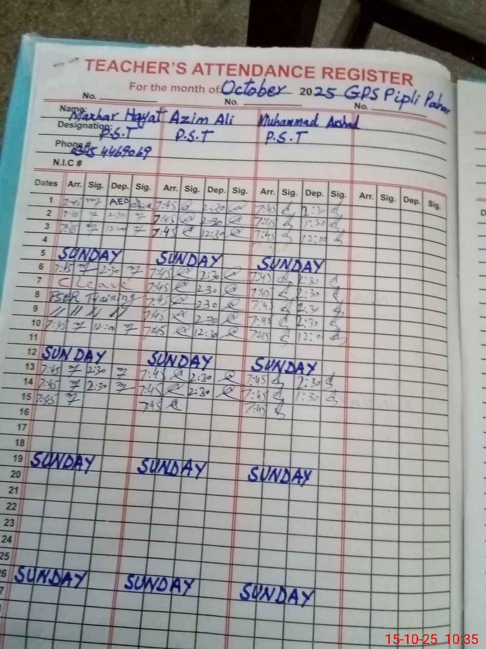 | Name of AEO: | AEO Contact No.: | MEA Phone#: 03**** | ||