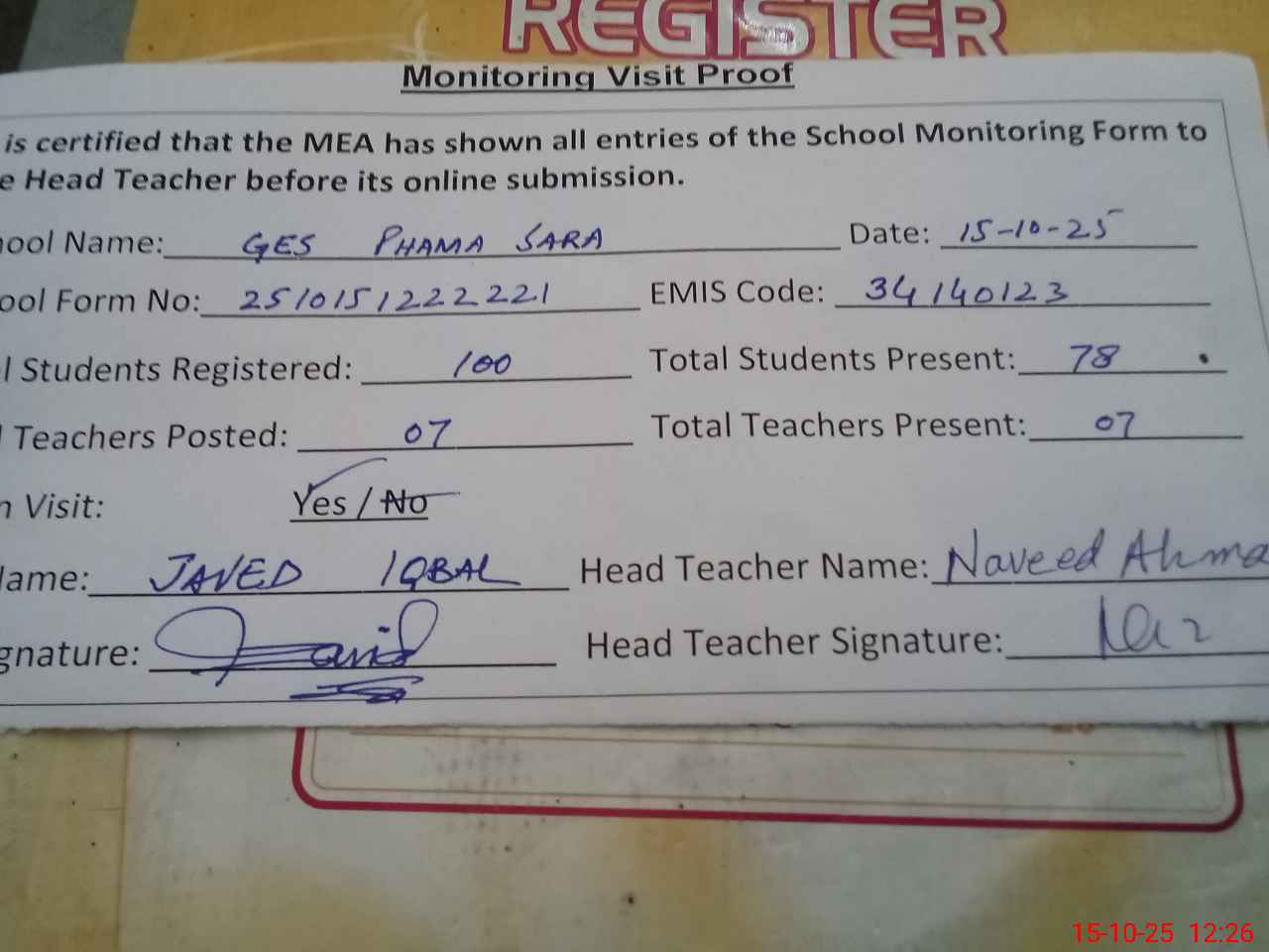 | EMIS Code: 34140123 | Name of School: GES PHAMA SARAI | |||