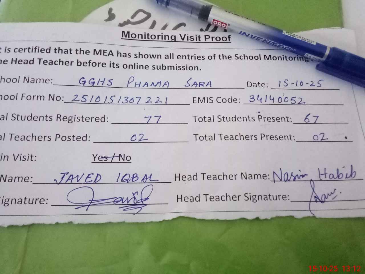 | EMIS Code: 34140052 | Name of School: GGHS PHAMA SARIA | |||