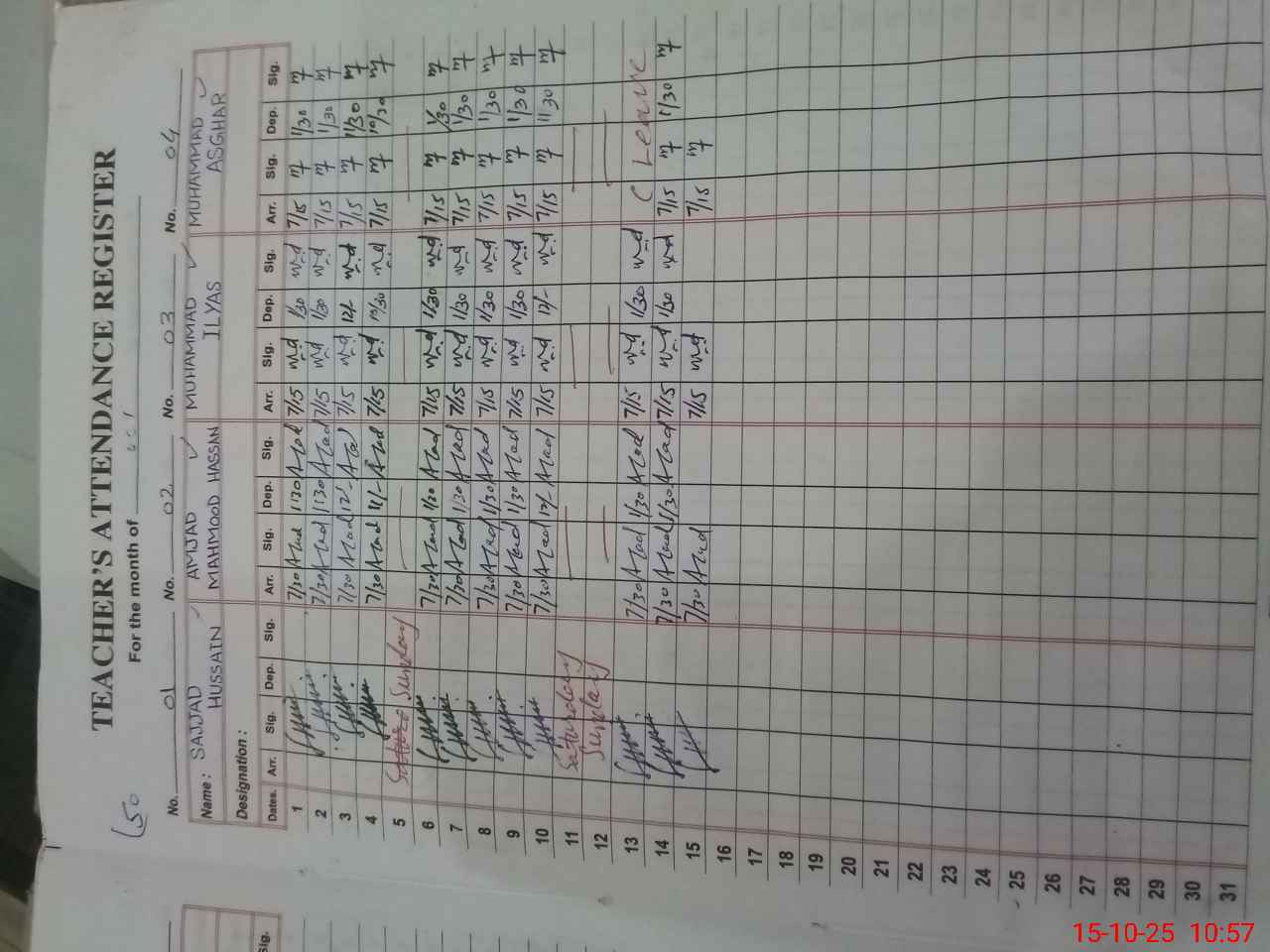 | CNIC | Full Name | Designation | R/C | Absence During Last Calender Month |