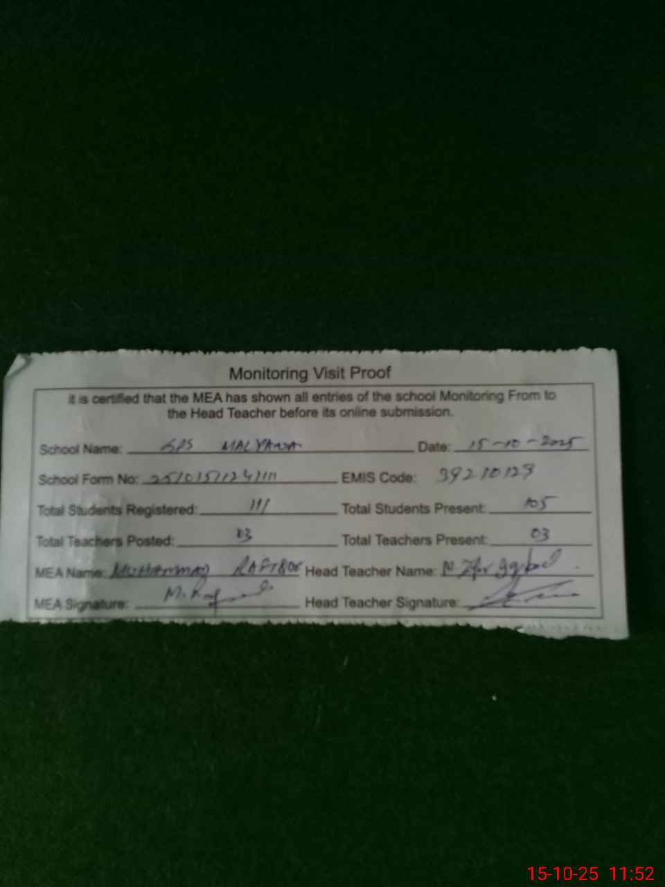 | EMIS Code: 39210129 | Name of School: GPS MALYANA P.O KALYANA | |||