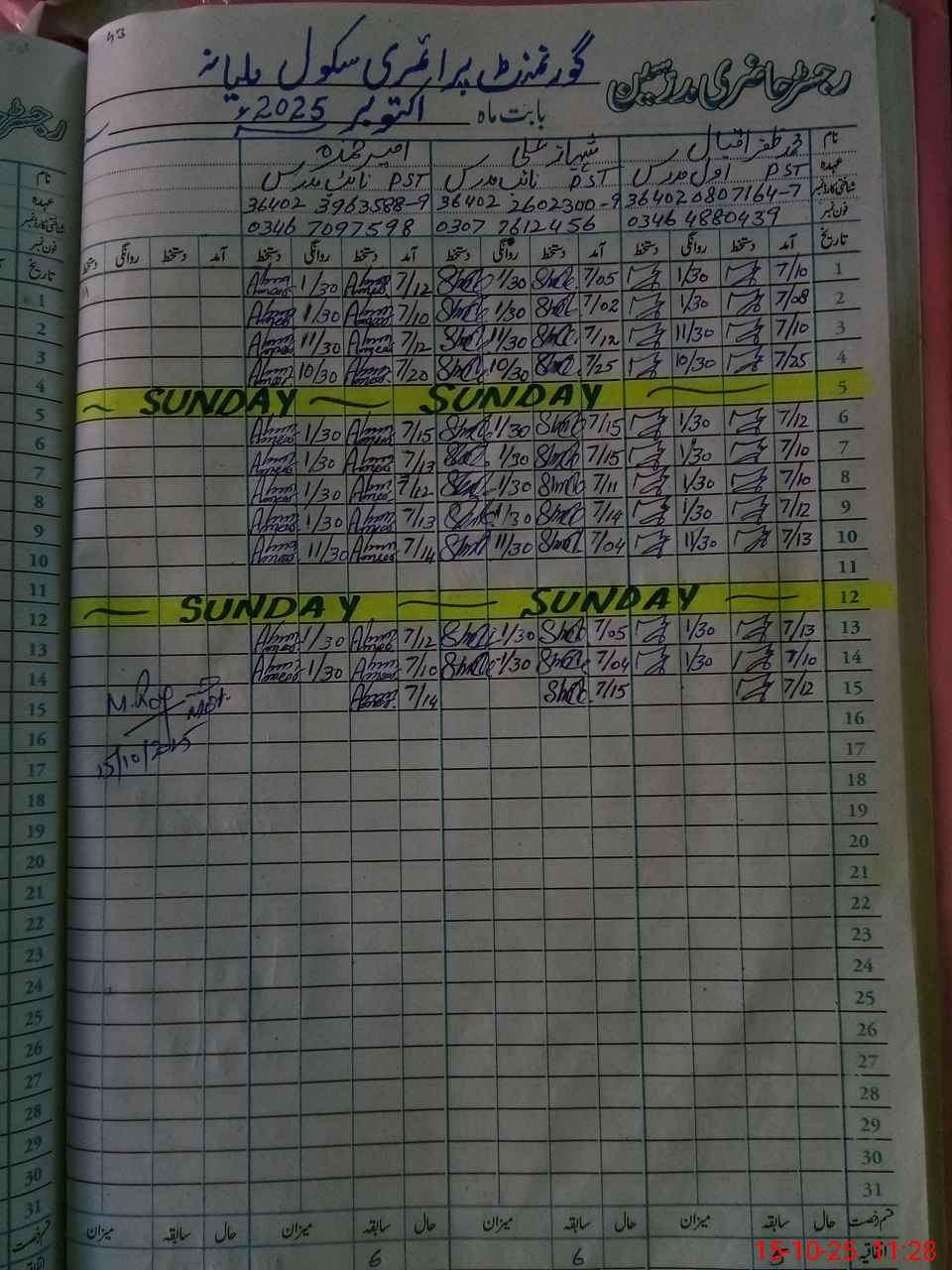 | Name: MU**** ZA**** IQ**** Designation: (School Headmaster's/Headmistress's) PST Phone/Cell Number: 03**** |