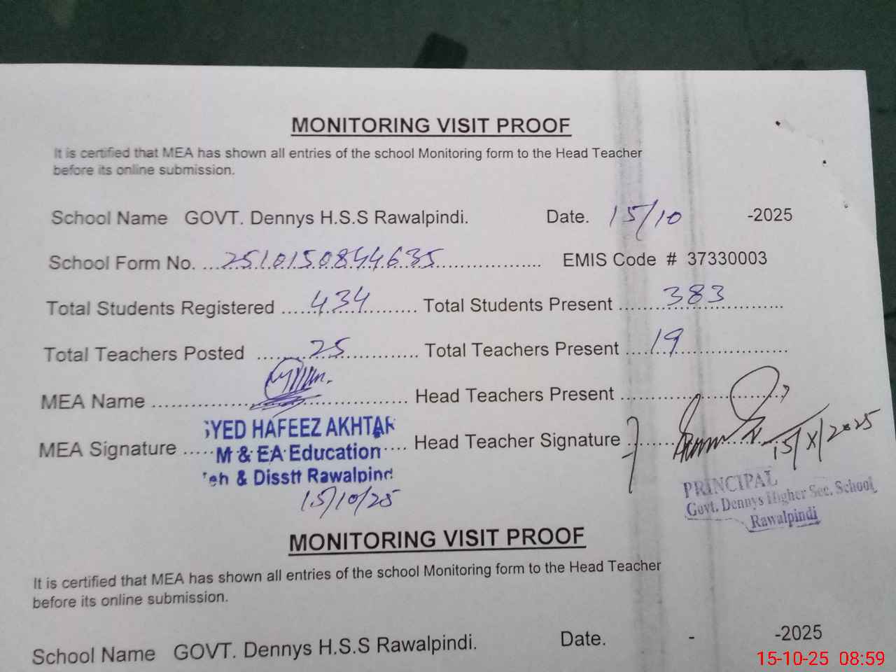 | EMIS Code: 37330003 | Name of School: GHSS DENNYS RAWALPINDI | |||