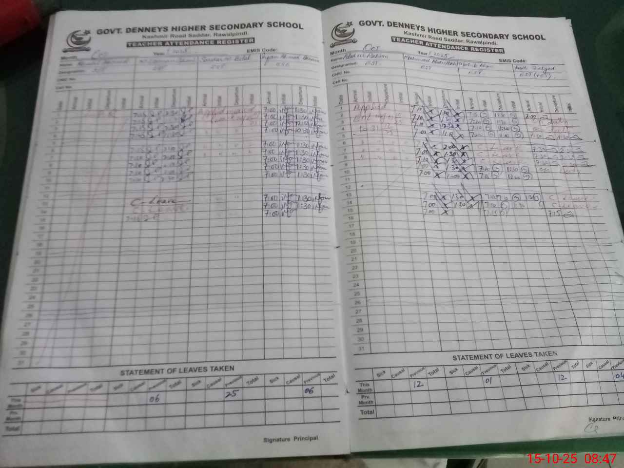 | Remarks (Use Separate Page if Required): Head Teacher Raja Amjad Iqbal has been retired since 12th September 2023 while his name is still being shown in pmiu app NSB record not updated in pmiu and sis both apps Students of class Nursery listed in pmiu app are not updated All students have left school | |||||