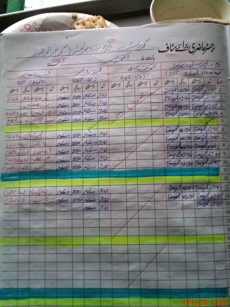 | 34**** | Ta**** Ta**** | EST | Regular | 0 | 0 | 0 | 0 | 0 | 0 | 0 | 0 | 0 | Exam Duty |