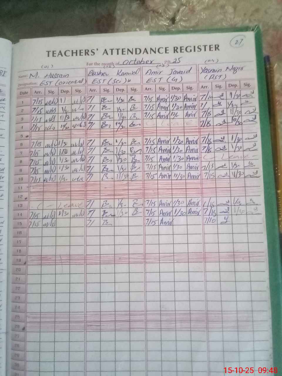 | CNIC | Full Name | Designation | R/C | Absence During Last Calender Month |