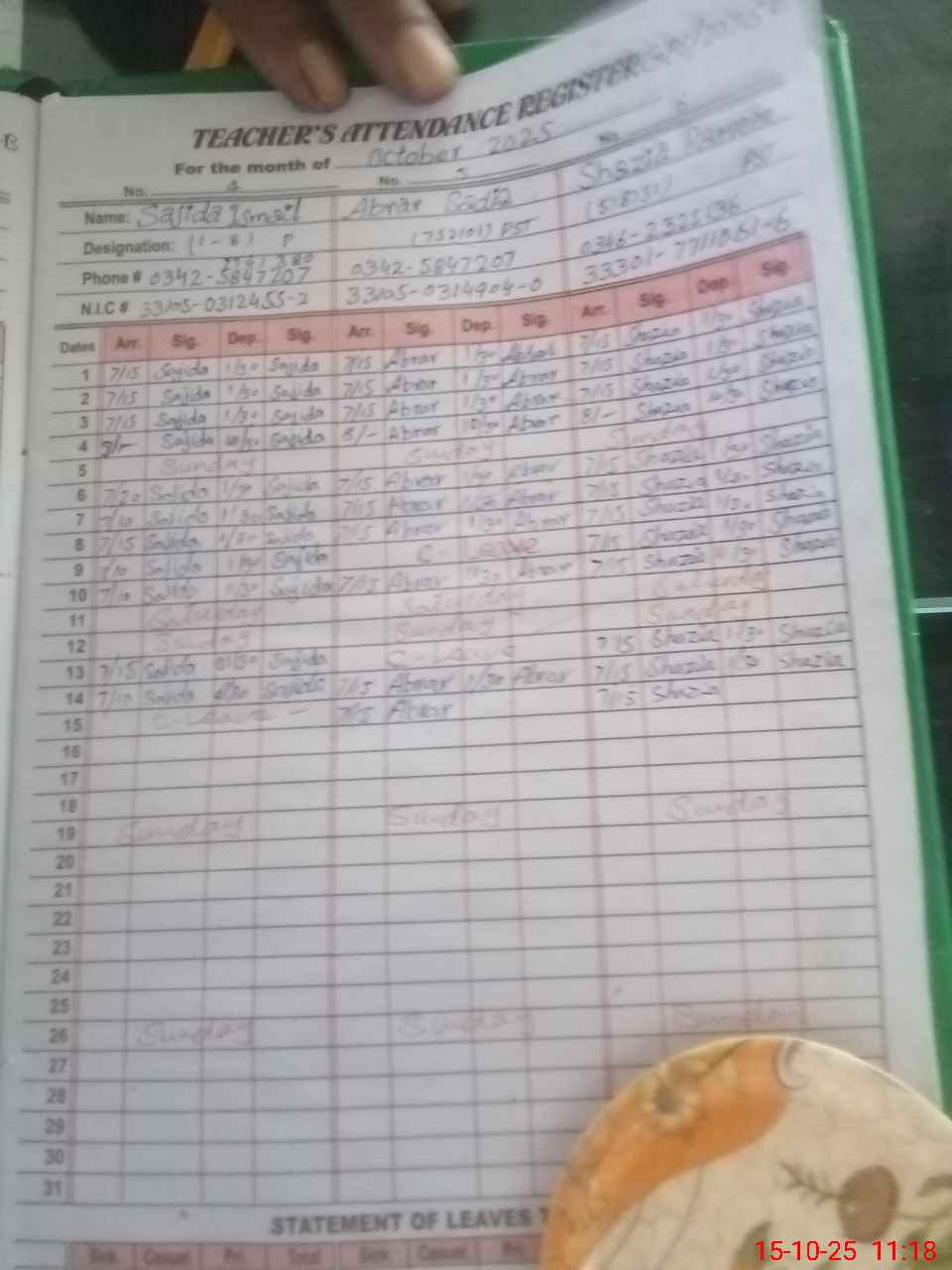 | Name: AB**** RA**** Designation: (School Headmaster's/Headmistress's) PST Phone/Cell Number: 03**** |