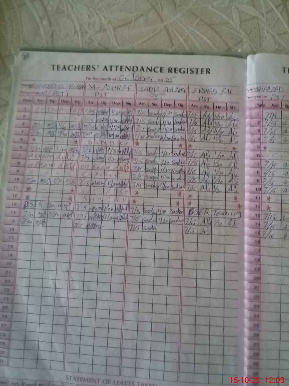| CNIC | Full Name | Designation | R/C | Absence During Last Calender Month |
