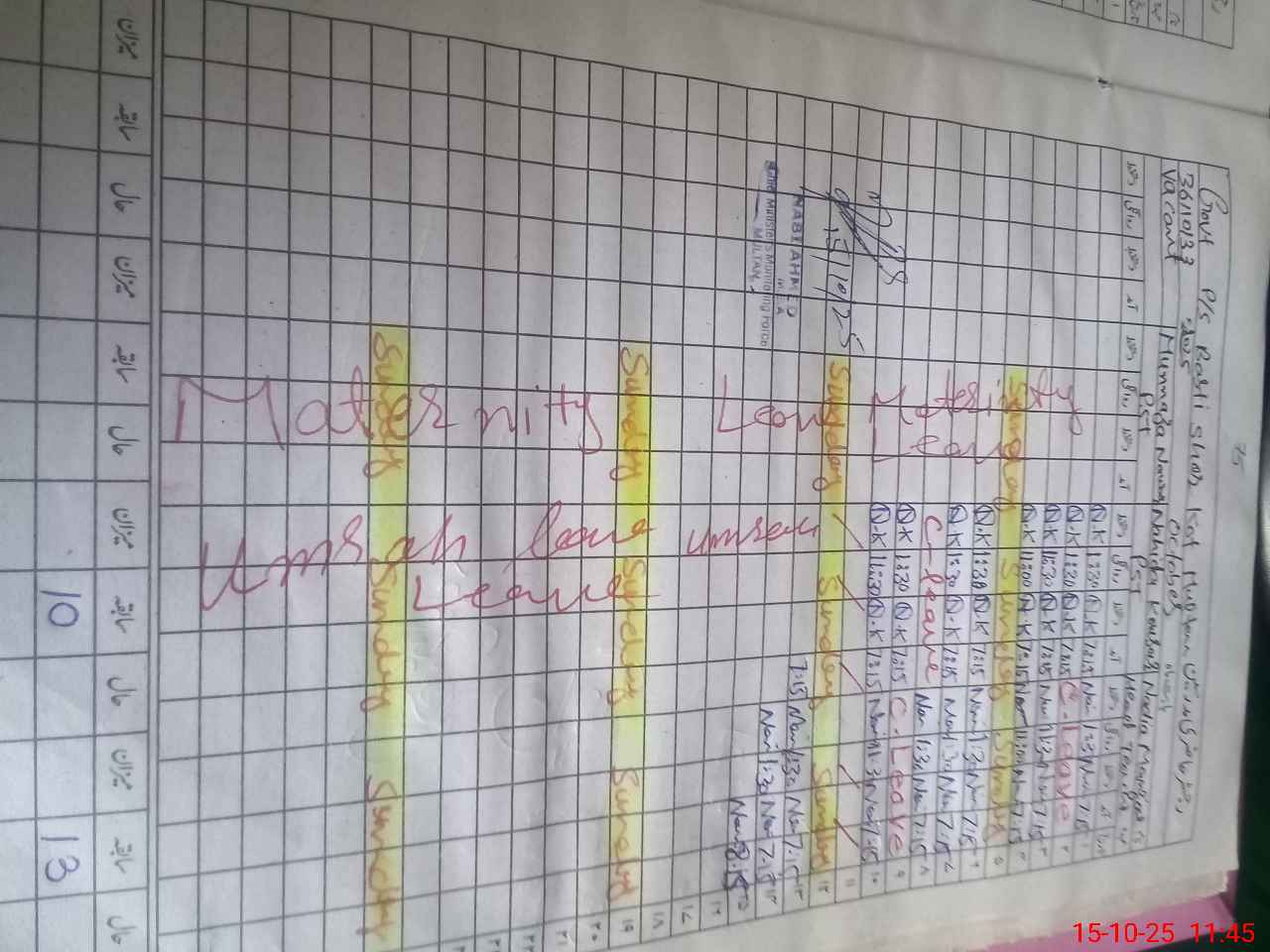 | 36**** | Mu**** Na**** | PST | Regular | 30 | 0 | 0 | 30 | 0 | 0 | 0 | 0 | 0 | Maternity |