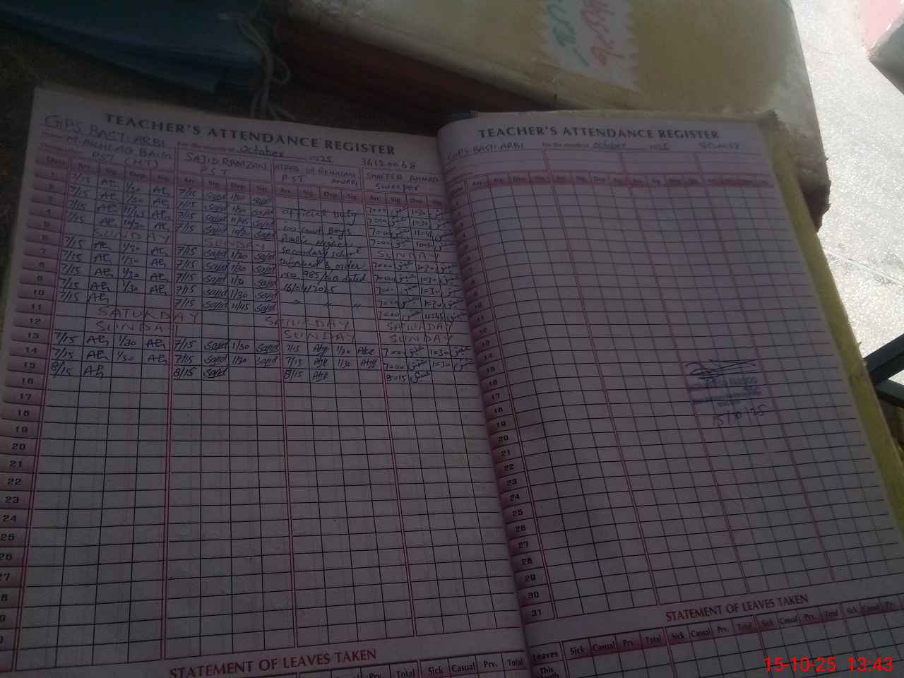 | Attendance Register | Head Teacher | MEA with School | Visit Proof |