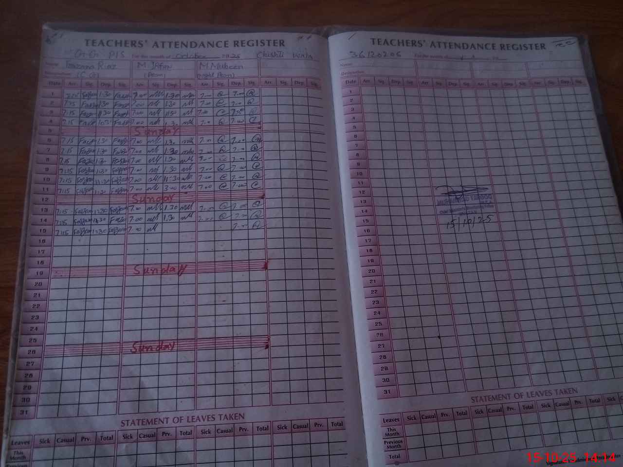| CNIC | Full Name | Designation | R/C | Absence During Last Calender Month |