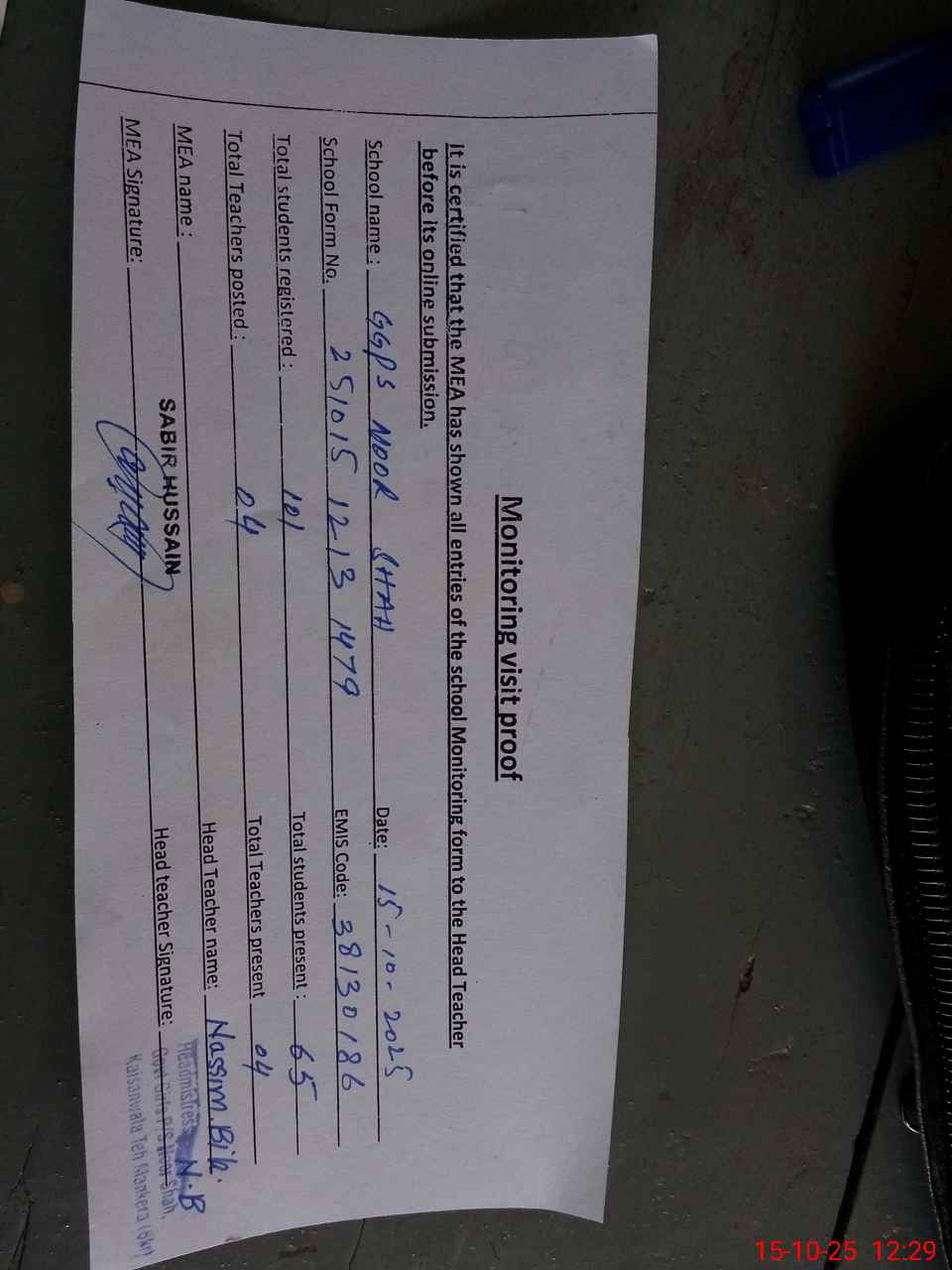 | Certified that this School was Inspected by the Undersigned MEA/DMO Today and the Information Stated Above is as Per Record. | |||||