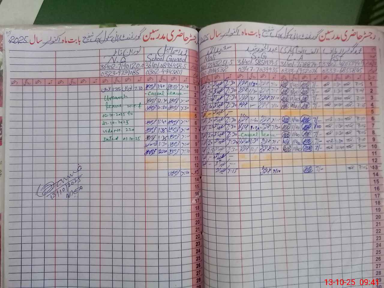 | CNIC | Full Name | Designation | R/C | Absence during last cal. month |