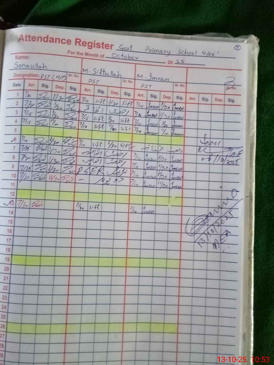 | Name: SA**** UL**** Designation: (School Headmaster's/Headmistress's) PST Phone/Cell Number: 03**** |