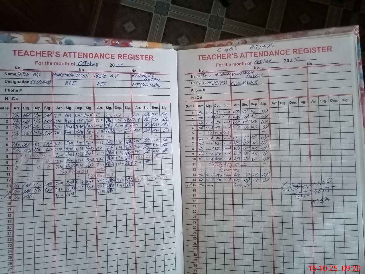 | Remarks (Use Separate Page if Required): Note MUHAMMAD NAVEED STI EST CNIC NO 3640185265013 found present at time of school inspection | |||||