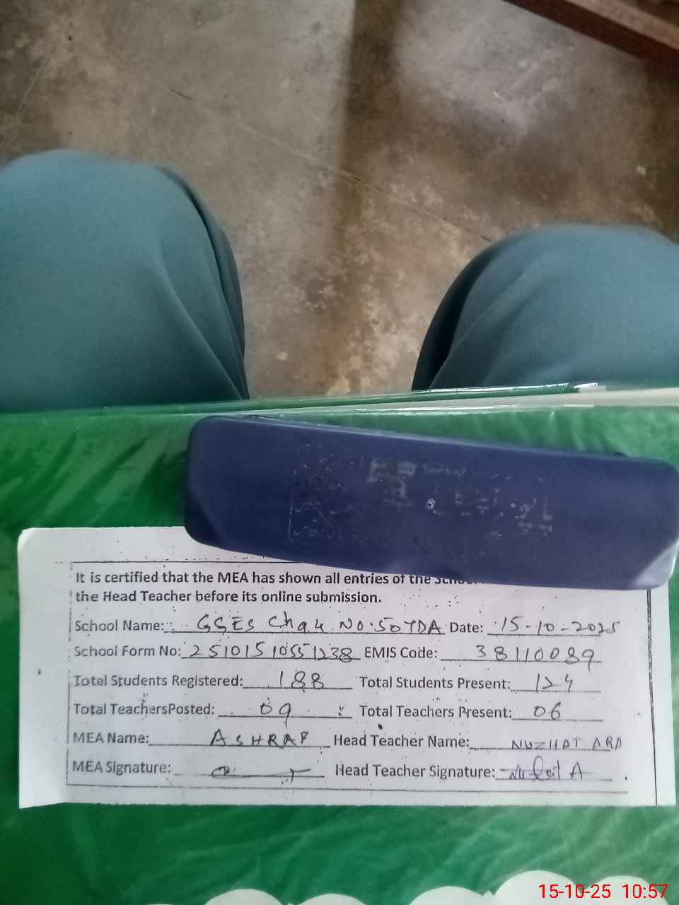 | EMIS Code: 38110089 | Name of School: GGES CHAK NO.50/TDA | |||