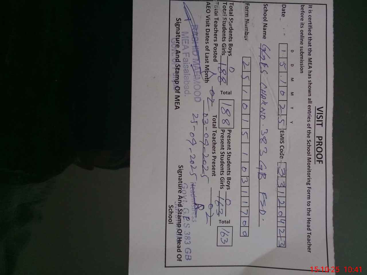 | EMIS Code: 33120423 | Name of School: GGES CHAK 383 GB LUNDIANWALA | |||