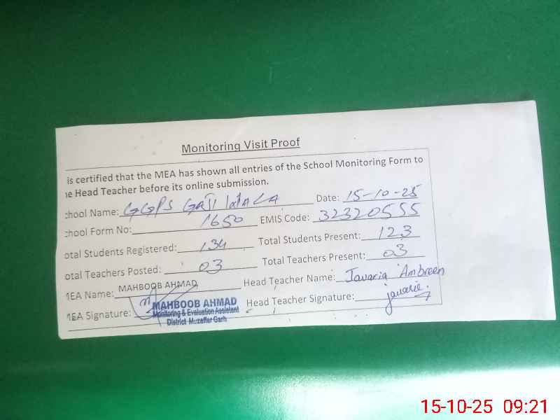 | EMIS Code: 32320555 | Name of School: GGPS GAJI WALA | |||