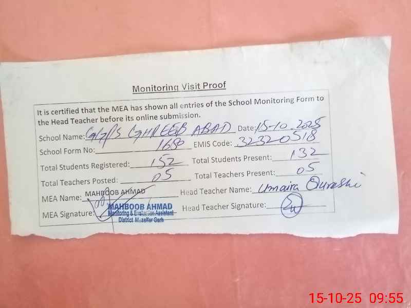 | EMIS Code: 32320518 | Name of School: GGPS GHAREEB ABAD | |||