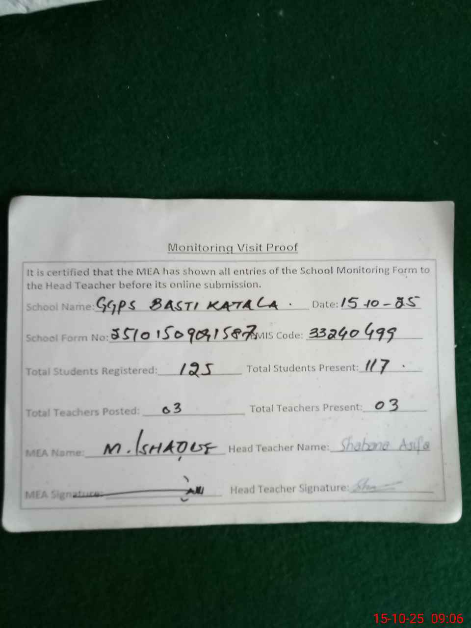 | EMIS Code: 33240499 | Name of School: GGPS BASTI KATALA | |||