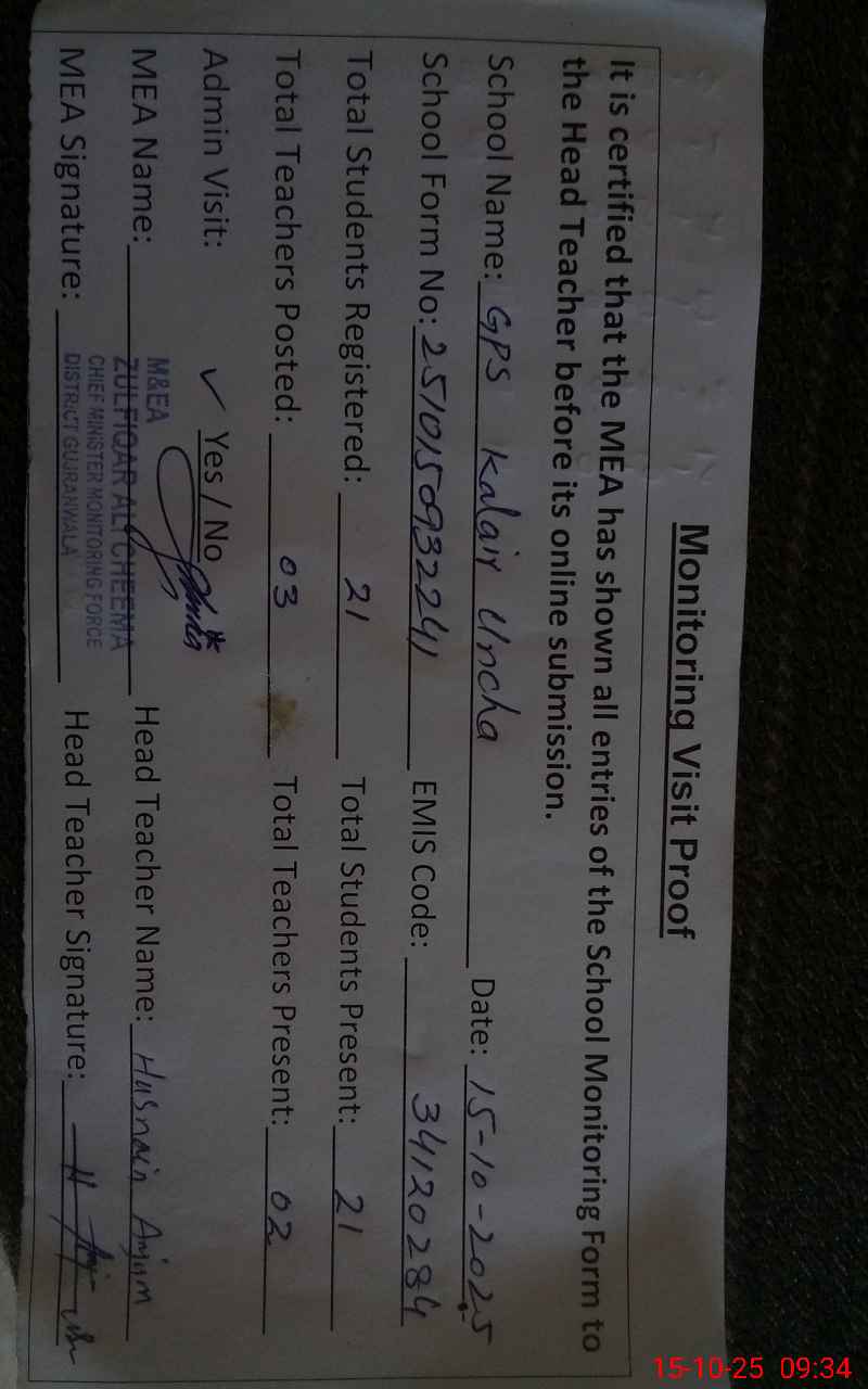 | EMIS Code: 34120284 | Name of School: GPS KALAIR UNCHA | |||