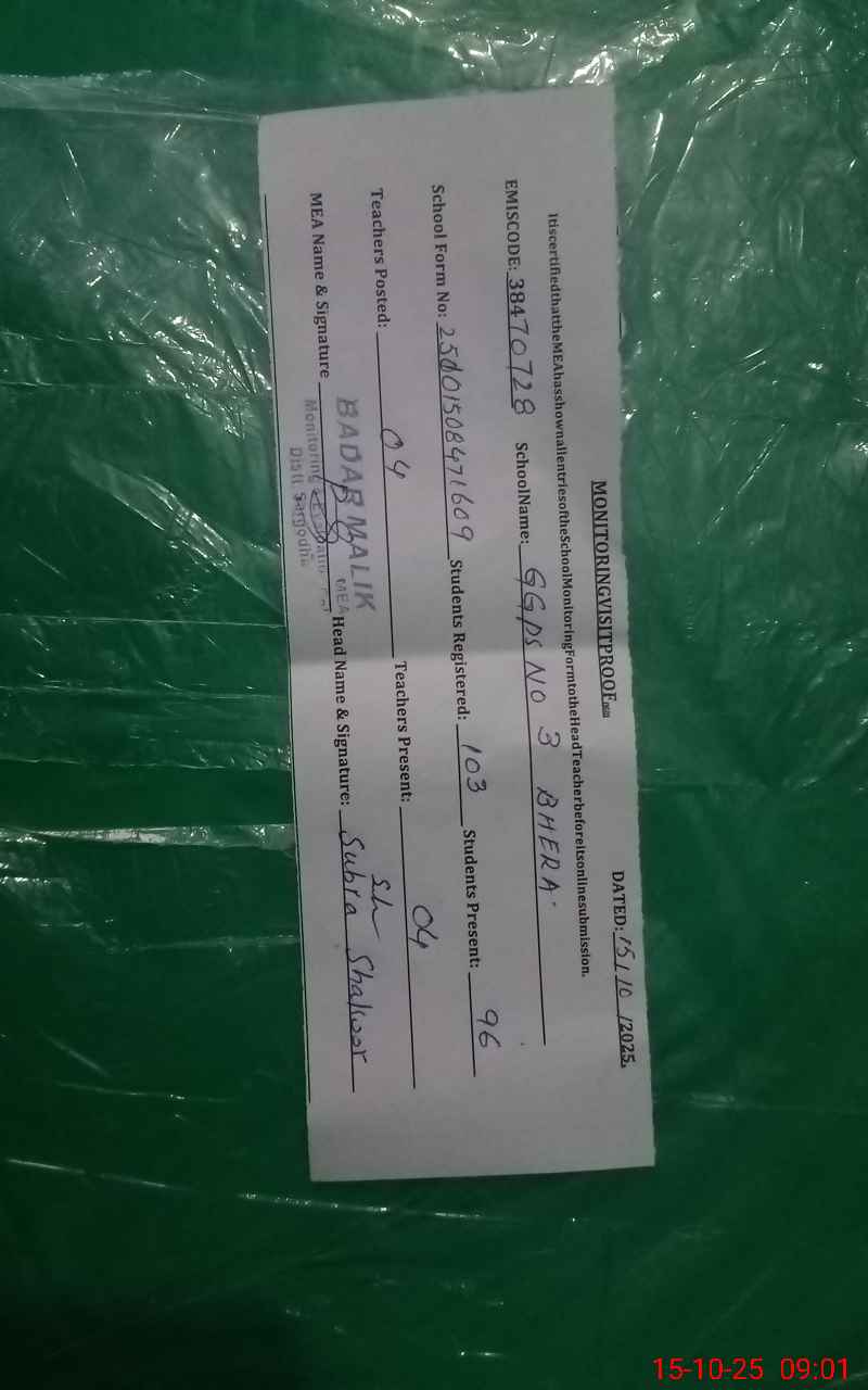 | EMIS Code: 38470728 | Name of School: GGPS NO.3 BHERA | |||