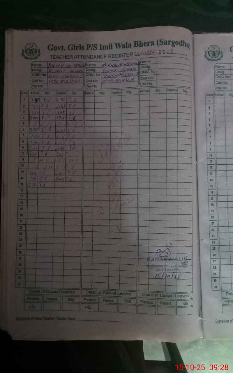 | Name: SA**** NA**** Designation: (School Headmaster's/Headmistress's) PST Phone/Cell Number: 03**** |