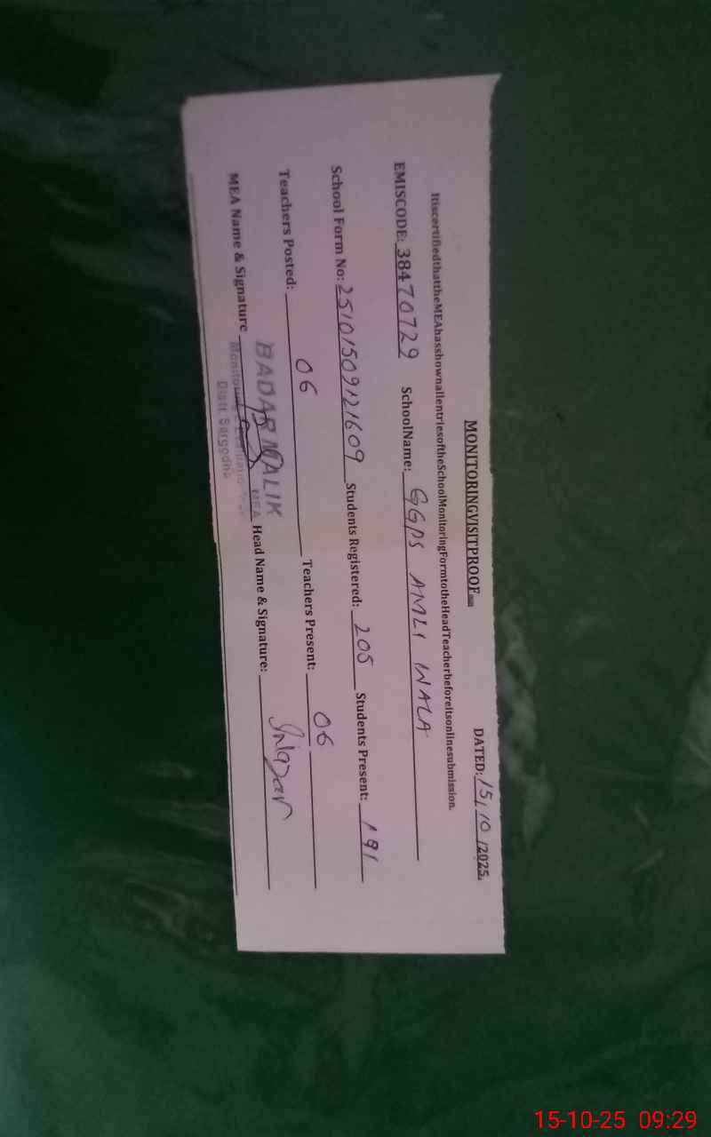 | EMIS Code: 38470729 | Name of School: GGPS AMLI WALA BHERA | |||