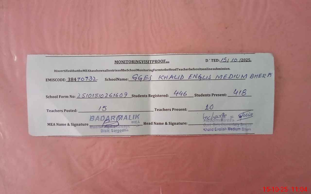 | EMIS Code: 38470732 | Name of School: GGES KHALID ENGLISH MEDIUM BHERA | |||