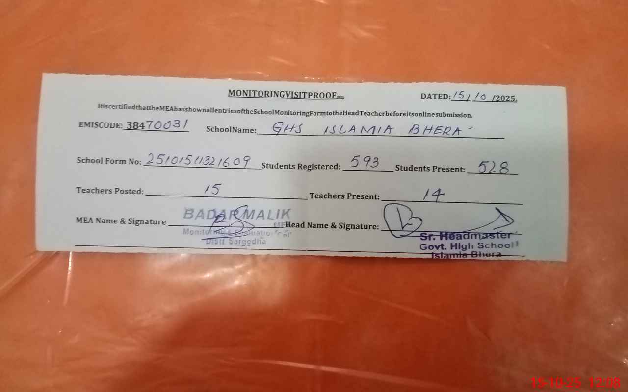 | EMIS Code: 38470031 | Name of School: GHS ISLAMIA BHERA | |||