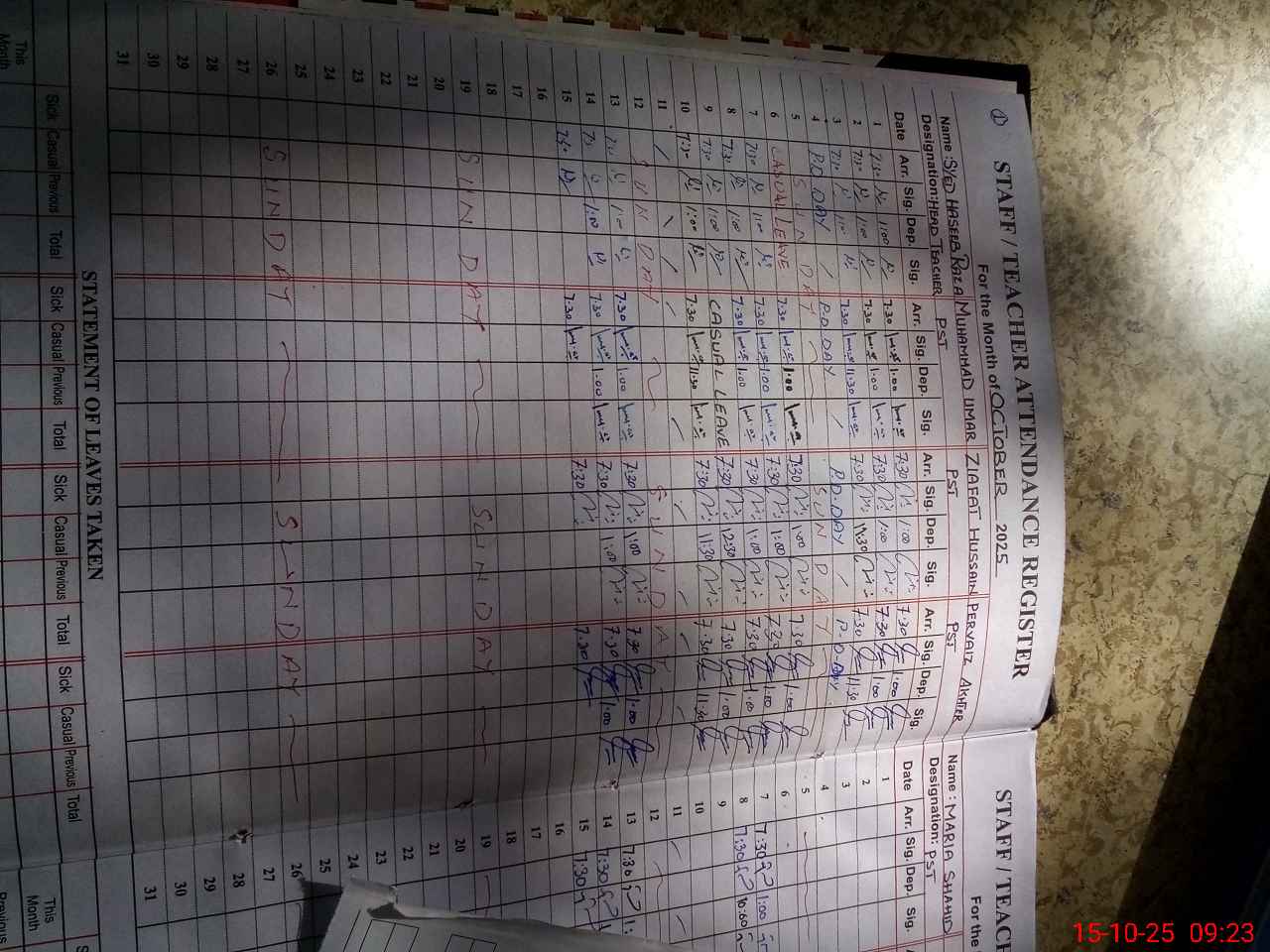 | Leave | Duty | Absent | Maternity | Medical | Ex- Pak |