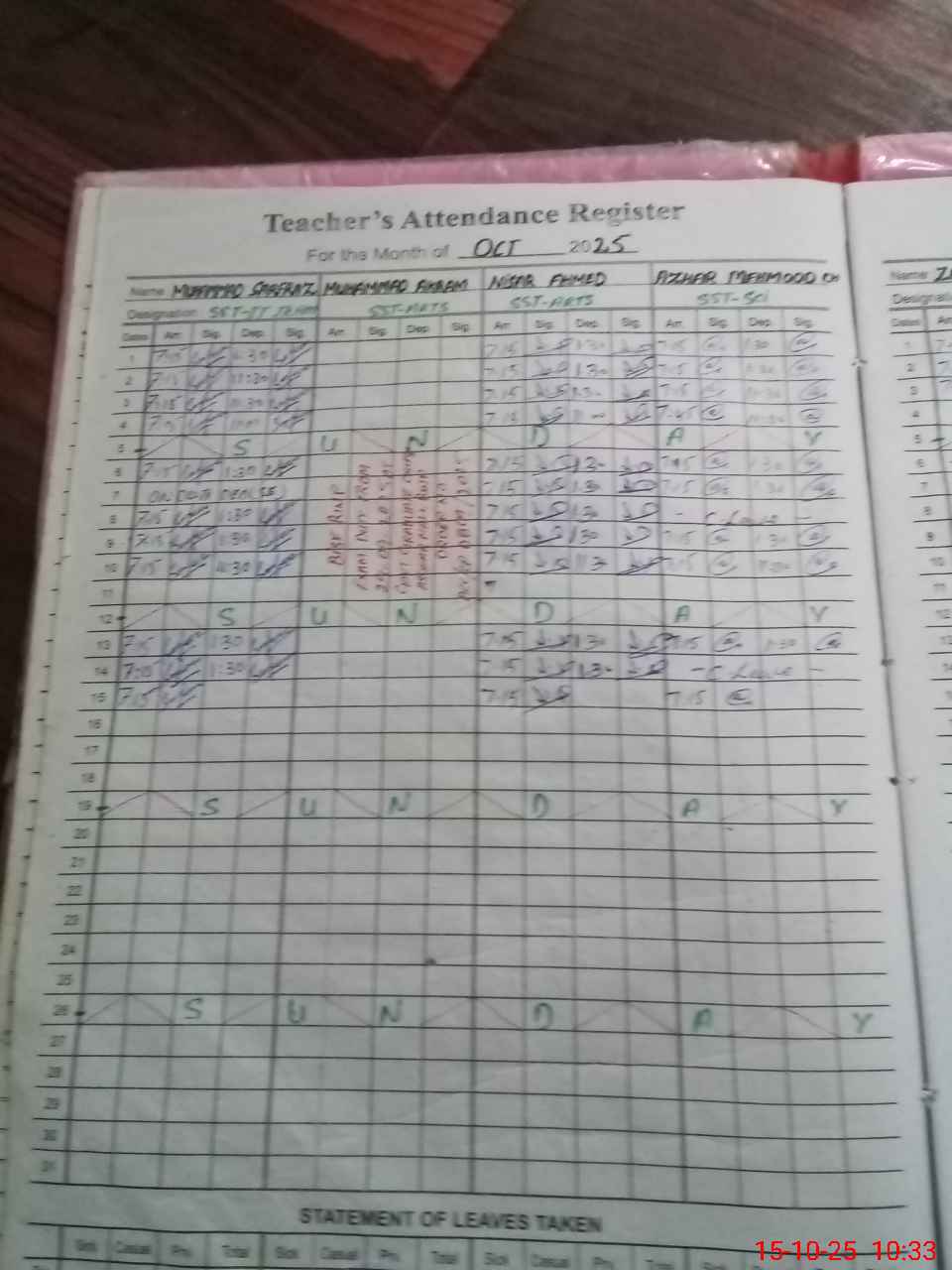 | 37**** | MAk**** | SST | Regular | 0 | 0 | 0 | 0 | 0 | 0 | 0 | 0 | 0 | Exam Duty |