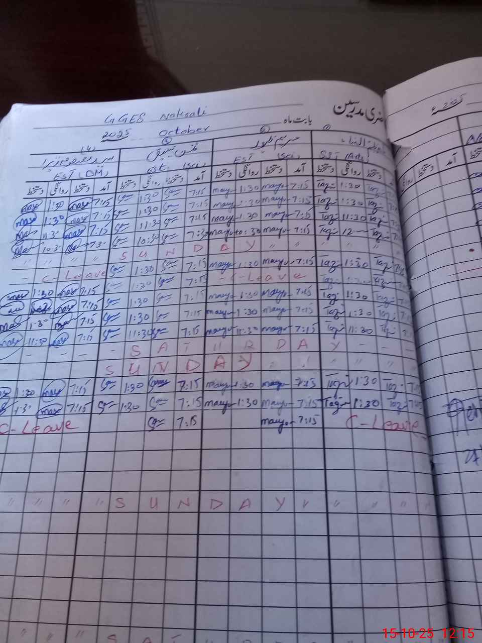 | Leave | Duty | Absent | Maternity | Medical | Ex- Pak |