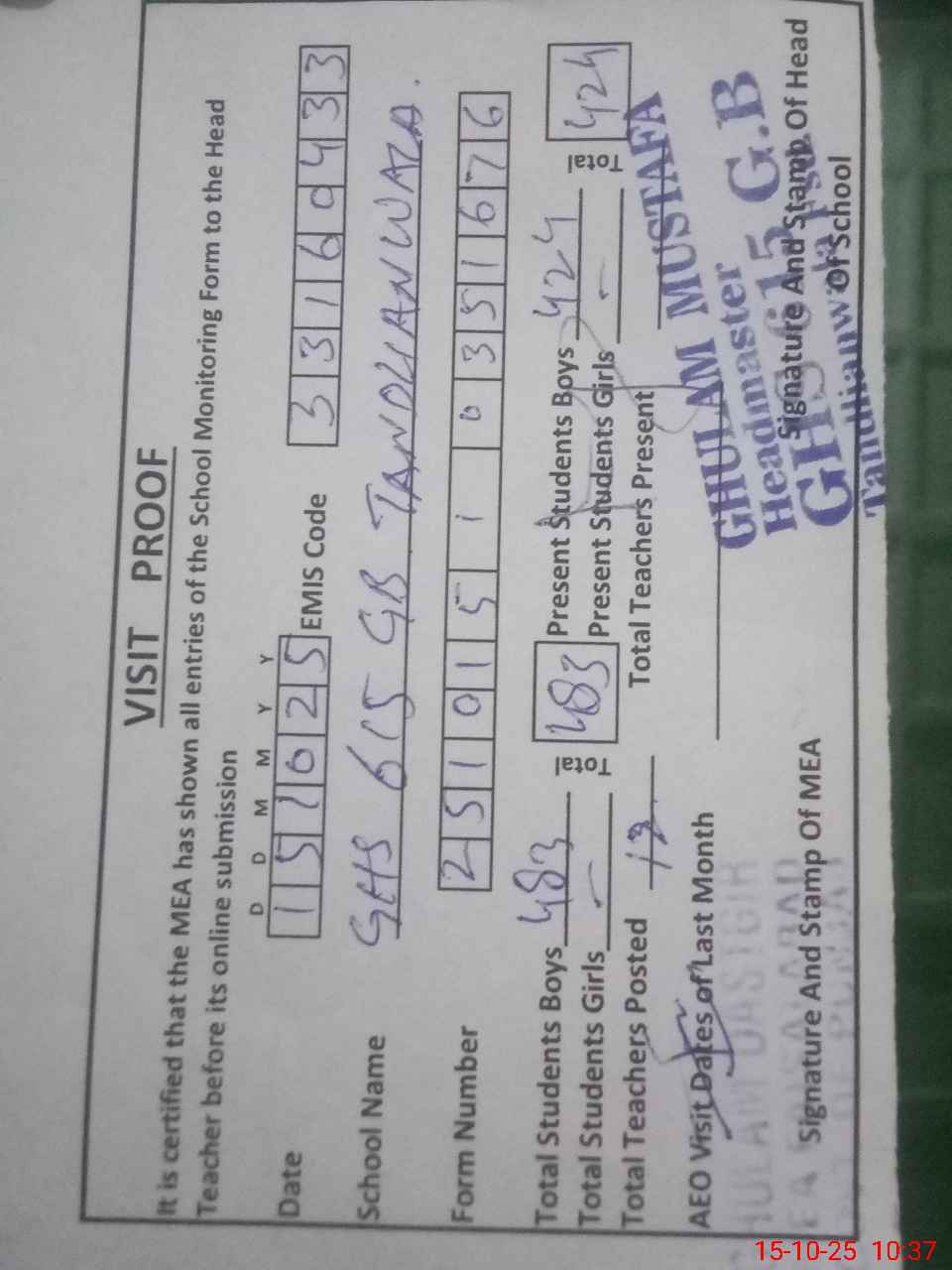 | EMIS Code: 33160433 | Name of School: GHS CHAK 615 GB TANDLIANWALA FSD | |||