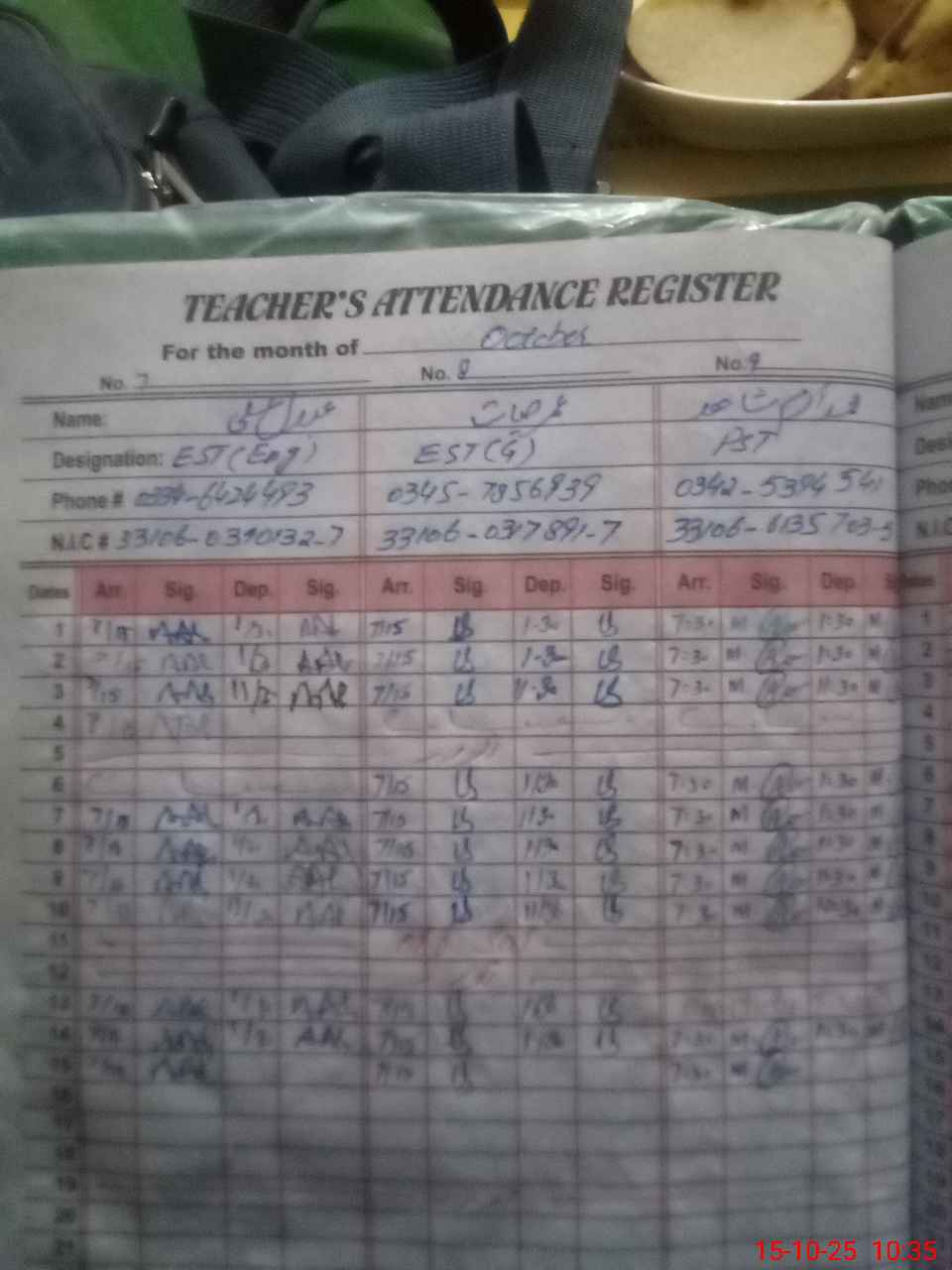 | Name: MU**** AB**** Designation: (School Headmaster's/Headmistress's) SST (SCIENCE) Phone/Cell Number: 03**** |